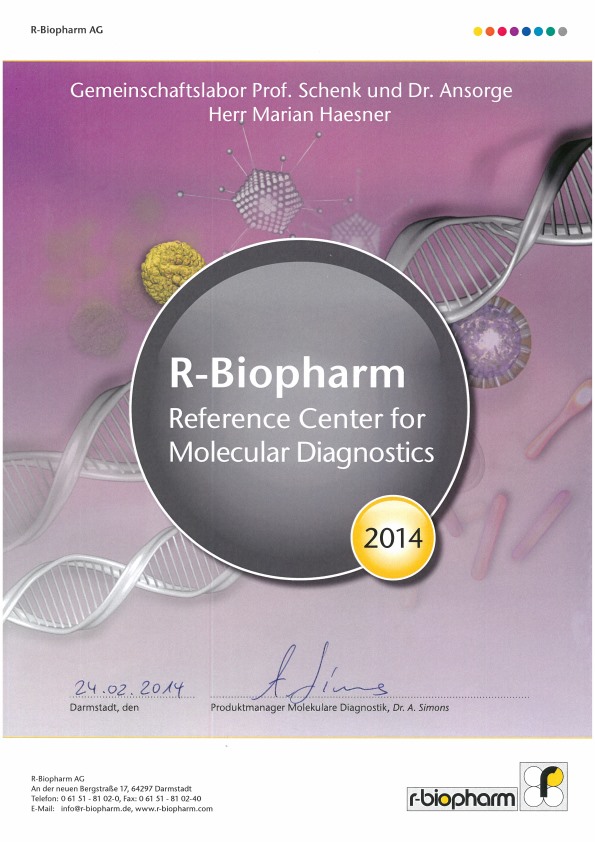 Das Labor ist seit 2005 akkreditiert nach DIN EN ISO 15189. Die Urkunde wurde durch die DACH (Deutsche Akkreditierungsstelle Chemie) erteilt.